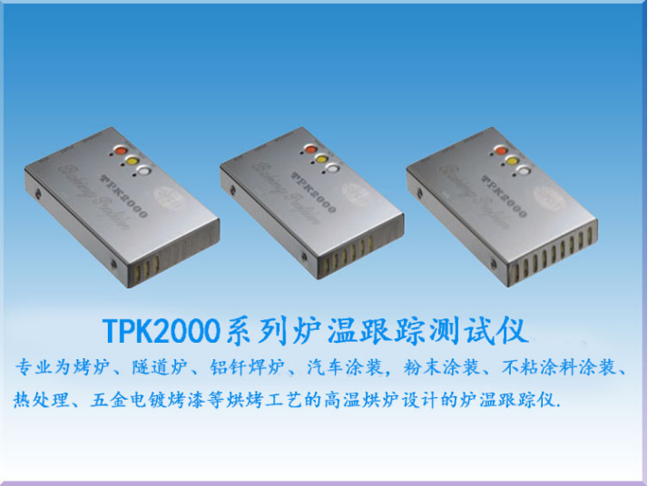 TPK2000系列爐溫跟蹤儀是專業(yè)為烤爐、汽車涂裝,粉末涂裝,不粘涂料涂裝、鋁釬焊爐、食品加工、化工、膠水固化,五金電鍍烤漆、淬火等烘烤工藝的高溫烘爐設計的爐溫跟蹤儀,是國內(nèi)唯一專業(yè)的烤爐/隧道爐/烘箱爐溫跟蹤儀,專業(yè)的硬件和軟件設計,為用戶提供更有效的爐溫跟蹤曲線測試和分析。產(chǎn)品同時適用于太陽能玻璃鋼化和固化、達克羅和久美特涂裝、家電不粘涂料涂裝、塑膠UV烤漆、環(huán)氧樹脂固化、電機滴漆固化、汽車涂裝、彩涂板烘干固化、搪瓷燒結(jié)、鋁合金熱處理、玻璃退火、五金噴粉等多種行業(yè)。