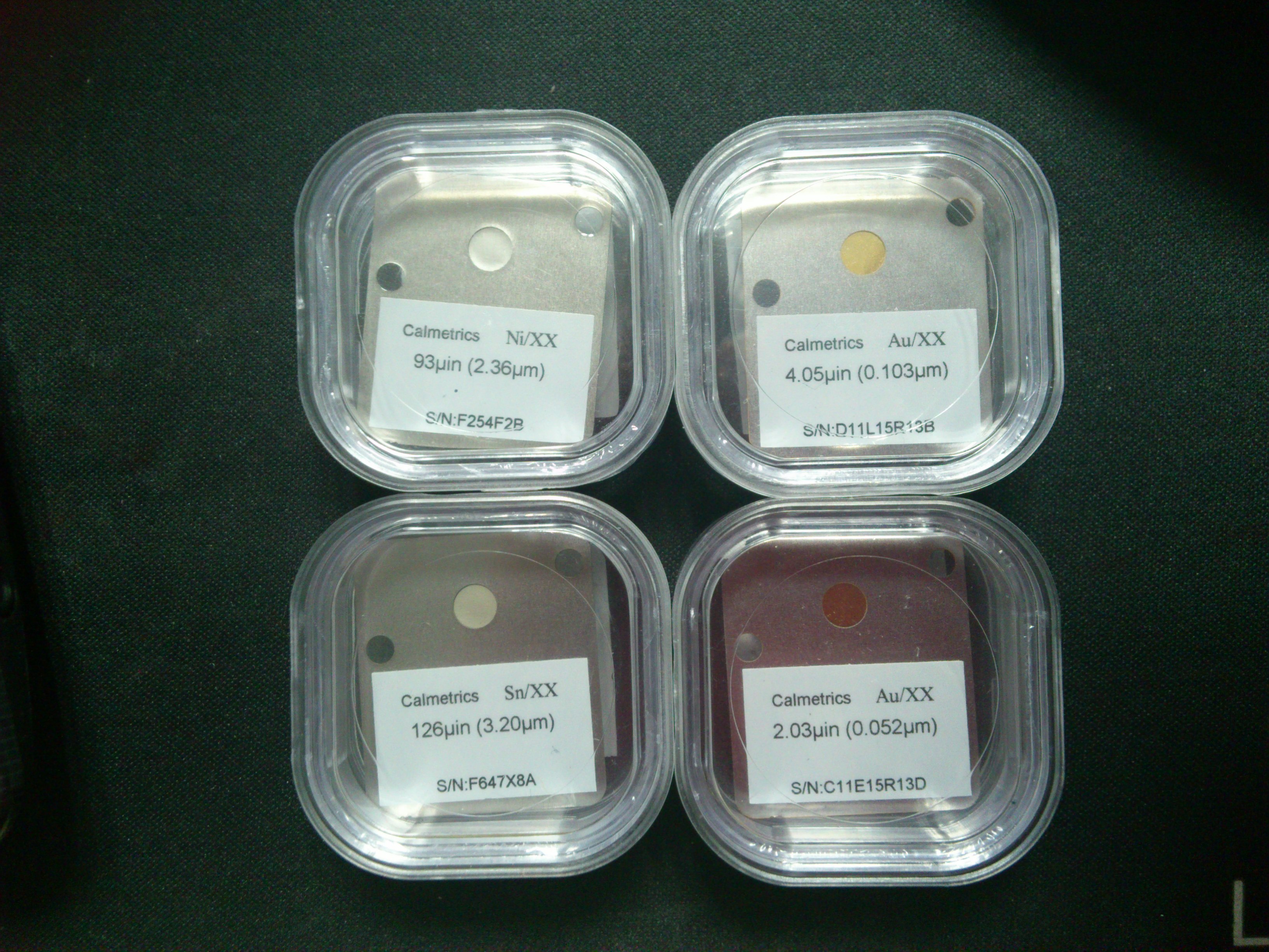 鍍層標(biāo)準(zhǔn)片AU/NI/CU/FE/CR/ZN/AG Standard Foil測(cè)厚儀標(biāo)準(zhǔn)片,校正片,又稱標(biāo)準(zhǔn)箔,膜厚片,通用于所有X射線鍍層測(cè)厚儀(進(jìn)口品牌Fischer、Oxford(CMI)、Thermo、Veeco、Micro Pioneer XRF-2000、Seiko SII等,國(guó)產(chǎn)天瑞,納優(yōu)等) 1. 薄膜片,單層測(cè)量品種:鎳(Ni);鉻(Cr);銅(Cu);鋅(Zn);Cd(4);錫(Sn);銀(Ag);金(Au);鈀(Pd)等,其它鍍層可定制. 2. 鍍層標(biāo)準(zhǔn)片:雙鍍層:Au/Ni/xx, 三鍍層:Au/Pd/Ni/xx等. 3. 合金標(biāo)準(zhǔn)片:合金鍍層測(cè)量:Sn-Pb、Cu-Zn、Zn-Ni 、Ni-P 等. 4. 測(cè)量厚度范圍:0.01-300μm.(特別厚度可訂做). 5. 我們還有ROH…